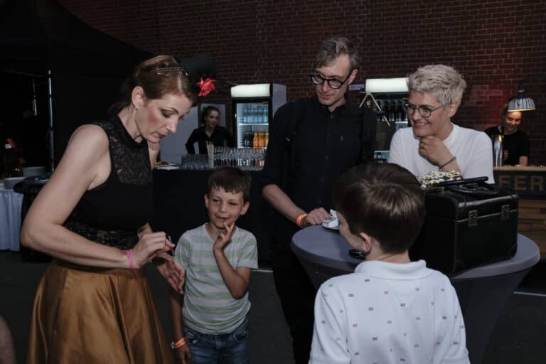 Es bereitet mir große Freude, Ihre Gäste auf Ihrem Event mit magischen Begrüßungskünsten zu empfangen. Durch visuell beeindruckende Tricks und zauberhafte Anekdoten heiße ich die Ankommenden willkommen, begleite sie zu ihren Plätzen oder überbrücke die Wartezeit bis zum offiziellen Beginn der Veranstaltung. Auf diese Weise wird bereits zu Beginn eine zauberhafte Atmosphäre geschaffen, und Ihre Feier beginnt in fröhlicher und ausgelassener Stimmung.